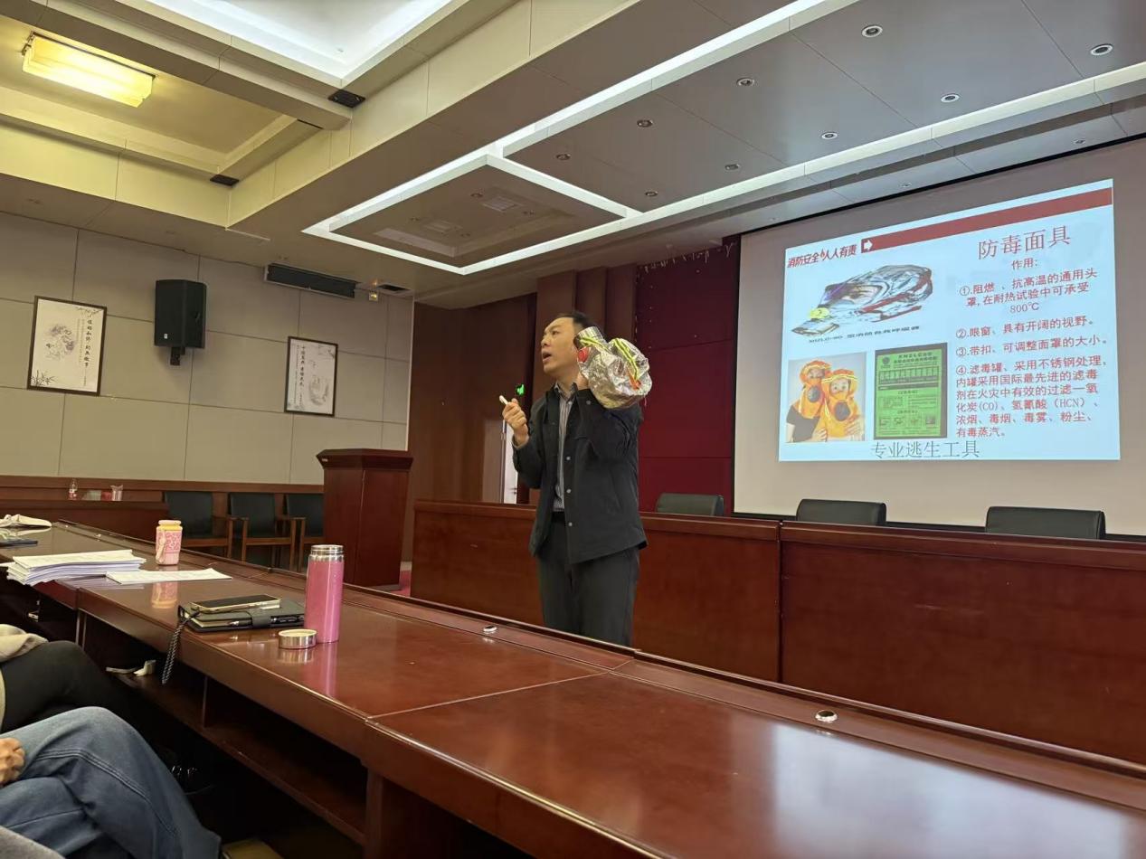培训伊始,万耀南教员结合图书馆建筑布局与藏书特点,系统讲解了火灾预防要点及应急处置流程。针对“提拔握压”灭火器操作、防烟面罩佩戴等基础技能,万教员通过分解动作演示与互动问答,确保每位参训人员掌握扑灭初期火灾的规范要领。在疏散逃生理论环节,他重点剖析了浓烟环境下的避险原则,强调"保持镇静、低姿前行、贴墙撤离、禁止乘梯"的逃生口诀,为实战演练做好充分知识储备。