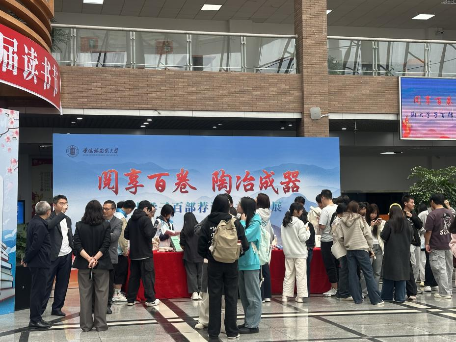 本次专题展展出的百部图书由学校相关部门及学院重点推荐与精心遴选,内容涵盖政治理论、中华优秀传统文化、红色文化、陶瓷文化与艺术、经典文学等多个领域,兼具思想性、知识性和可读性,能够满足师生多元化、高品质的阅读需求。书展现场,师生或驻足纸本图书展示区阅读,或通过瀑布流和歌德电子书借阅机阅读电子图书,切实感受文字力量与阅读之美。